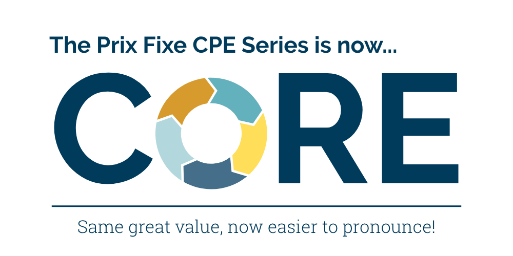 By purchasing the CORE CPE Series Bundle, you are registering for each CORE CPE Series webinar included in that bundle. Due to the unbeatable value of the CORE CPE Series, we are unable to apply additional discounts to the purchase price, nor can we offer substitutions, transfers, or refunds of any kind. Additionally, unattended webinars do not “roll over” into any subsequent year’s CORE CPE Series.